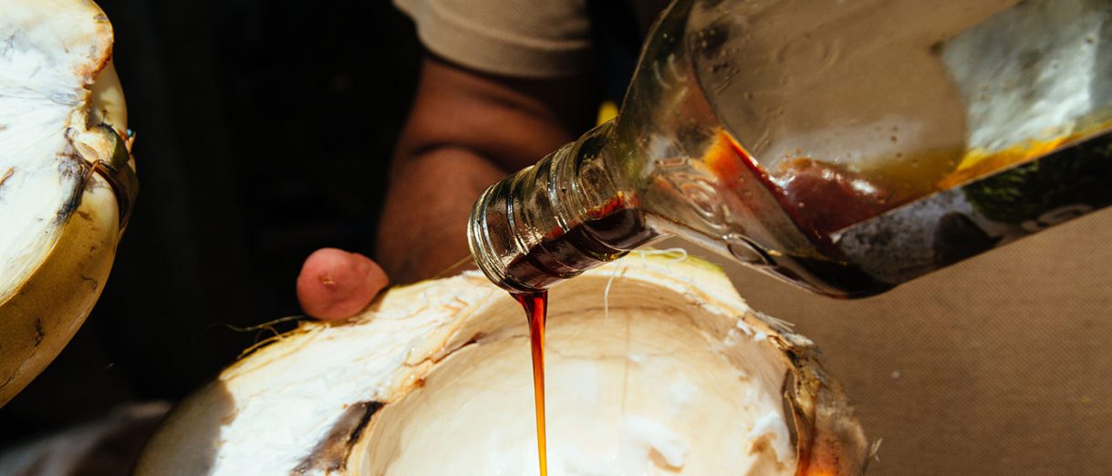 There is a little more cycling to do once the river slows and the land flattens again, but just as I feel my batteries beginning to fade, Hasantha directs us in to a stop at a roadside kiosk manned by a little boy and his mother. King coconuts are cut open and a straw popped into the top. I drain the electrolyte-rich water, before the mother takes the coconut back and splits it open. Fetching a bottle of dark brown palm flower syrup, she tips a little in and mixes it together with the soft, white flesh inside. The sweet, sugary, coconut jelly it creates is not only amazing, but it gives me an immediate rush. Within a minute I’m back on the bike, waving goodbye and covering the last few kilometres back to Jetwing Kaduruketha.