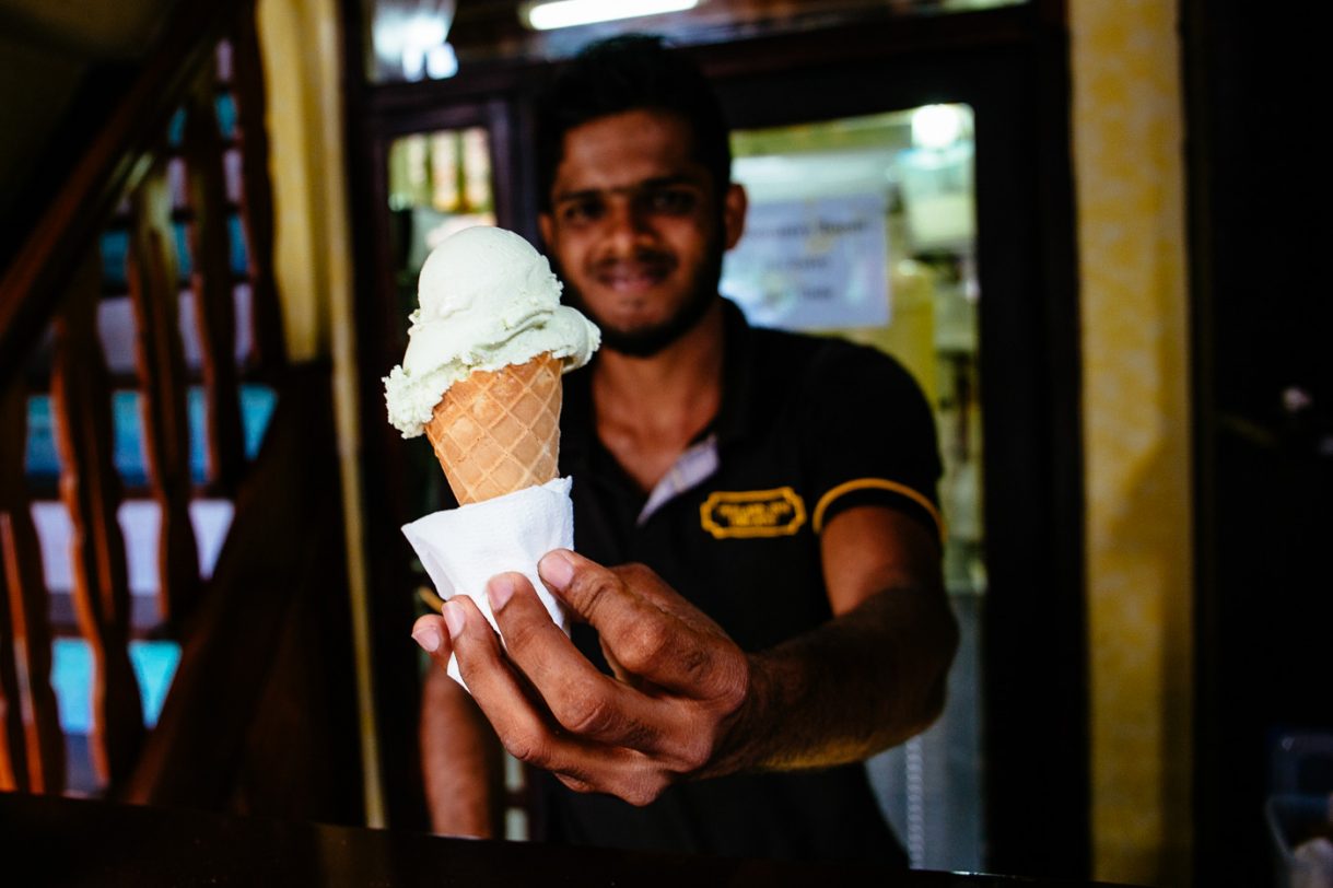 9:30pm – To earn dessert we nip back into Galle Fort and walk to Pedlar’s Inn Gelateria as we’d heard so much about the gelatos here. Produced to a cherished Italian recipe, these gelatos zing with tropical Lankan flavours such as coconut, passion fruit and banana. We opt for cups of pistachio and chocolate, and savour them from the ramparts beyond.